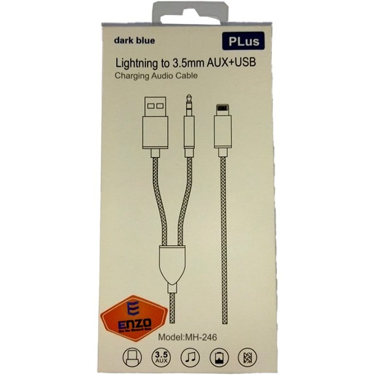 این کابل دارای یک سر لایتنیگ برای اتصال به گوشی آیفون ۷/۸ و یا ۷/۸ پلاس و دو سری دیگر یکی برای شارژ گوشی که به درگاه USB وصل میگردد و دیگری جک 3.5mm که با اتصال به ضبط خودرو، اسپیکر، هدفون و غیره برای شنیدن صدای موزیک استفاده میشود.